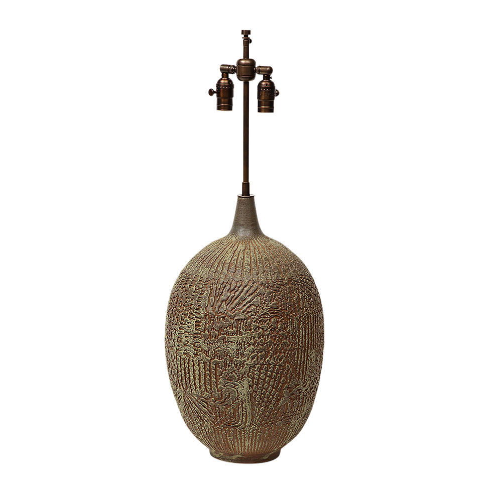 Lee Rosen Design Technics Lamp, Ceramic, Bronze, Gunmetal, Glazed, Signed